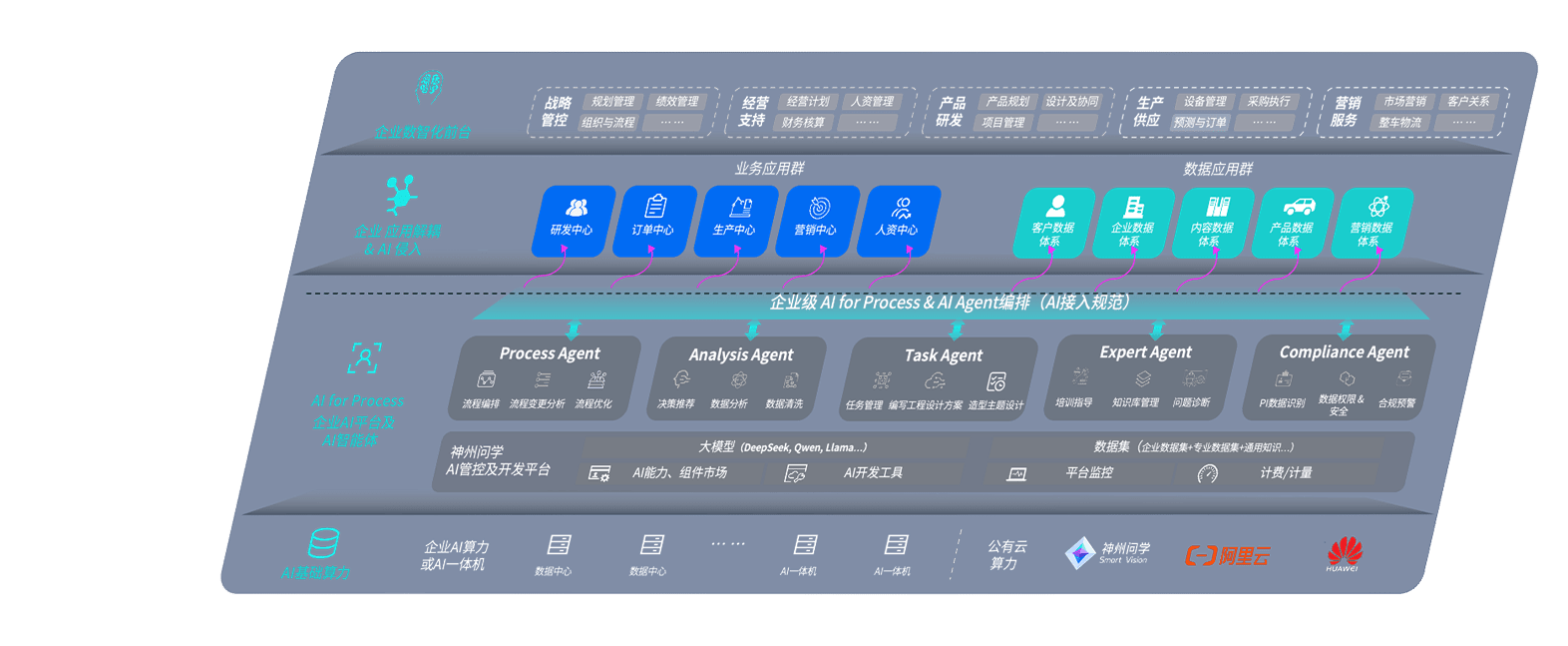 GALAXY银河问学智车解决方案是一套基于AI技术的汽车行业智能化系统,,覆盖从底层算力到顶层AI应用的全栈方案。。。。方案由算力层、、、、模型层和应用层组成:算力层,,,方案支持多种一体机配置,,具备云端灵活部署、、、多云适配以及动态优化计算资源的能力;模型层,,,,GALAXY银河问学平台版提供了企业级AI应用一站式构建与管理平台,,,支持基于后训练强化技术的汽车企业专属模型的训练、、、评测和运营;应用层,,,,GALAXY银河问学DeepSeek版提供包括超级员工、、、智能招采、、智能营销、、、、智能客服、、、、AI for BI等一系列解决方案,,,,可助力汽车行业实现数字化转型,,让管理更智能、、、响应更敏捷。。。。