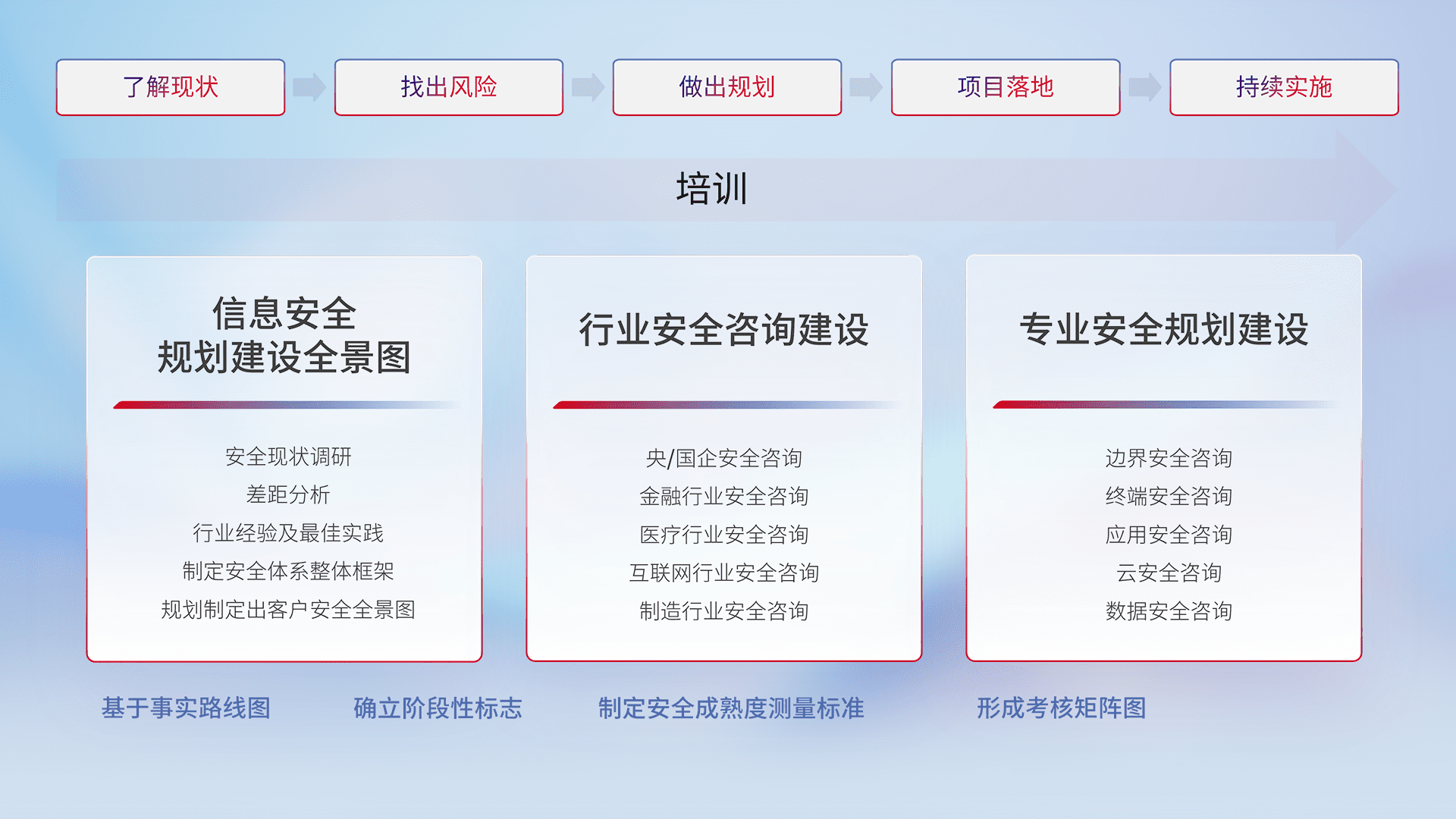 通过专业的法律咨询解读、、合规架构体现、、、差异化解决方案、、、、测试实施支持等服务,,为客户量身打造等保合规体系。。