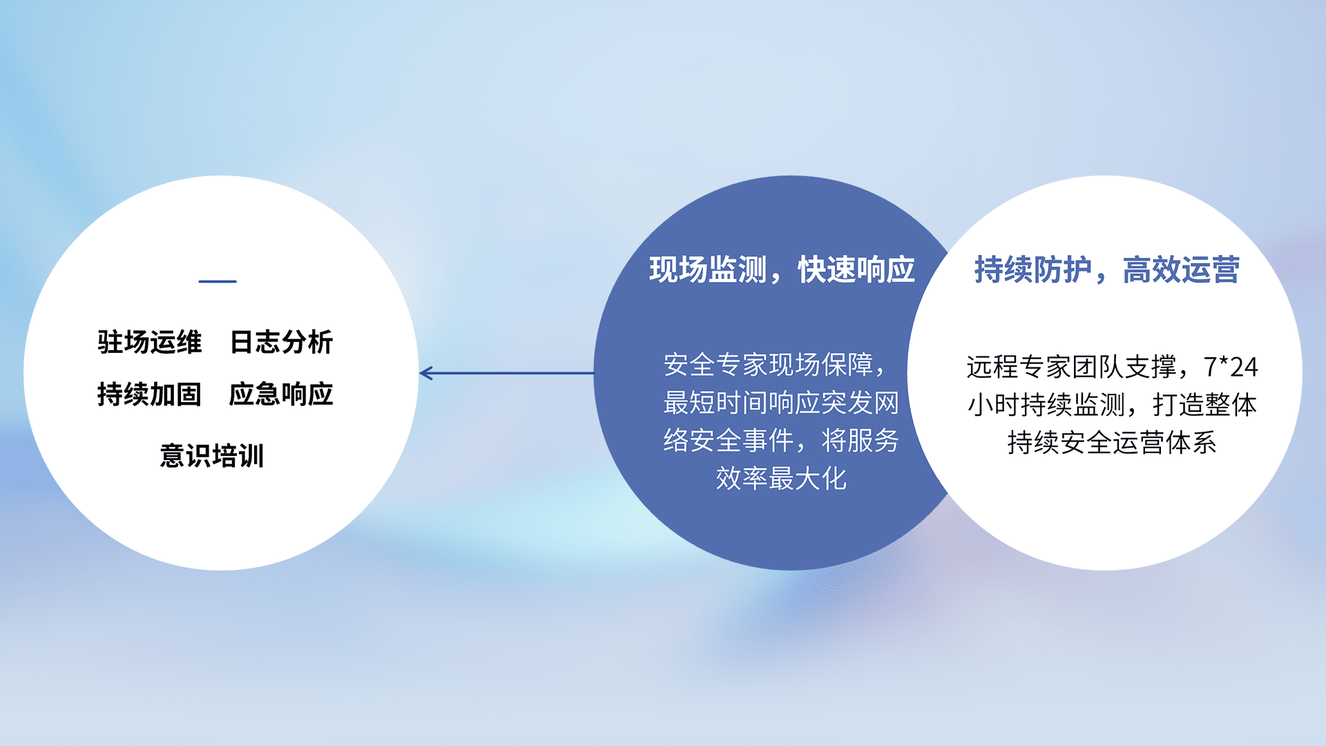 针对客户行业特性,,提供专属的一站式安全管理服务,,,,帮助客户全面感知网络空间威胁,,,,通过安全专家的线上、、、线下防护支持,,实现风险闭环,,,,将安全保障常态化,,,,为客户打造常态化安全运维运营服务。。。。